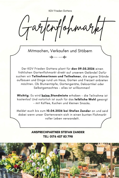 Der Kleingartenverein "Frieden" Gottenz e.V. lädt ein und freuen sich auf viele gärtnerische Interessenten.